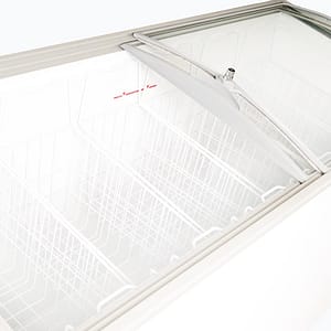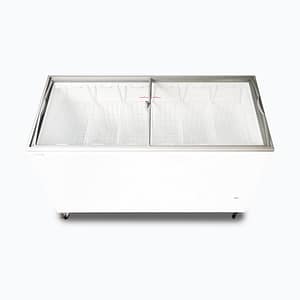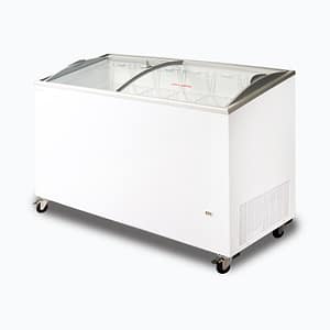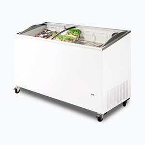 This model combines sleek presentation with commercial-grade functionality. With a curved glass lid to highlight your products and a branding-ready exterior, it’s a go-to solution for increasing frozen product visibility and boosting sales in high-traffic retail spaces.