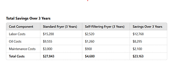 It’s true—a self-filtering fryer costs significantly more upfront than a standard fryer. But the long-term savings are undeniable. Here’s how: