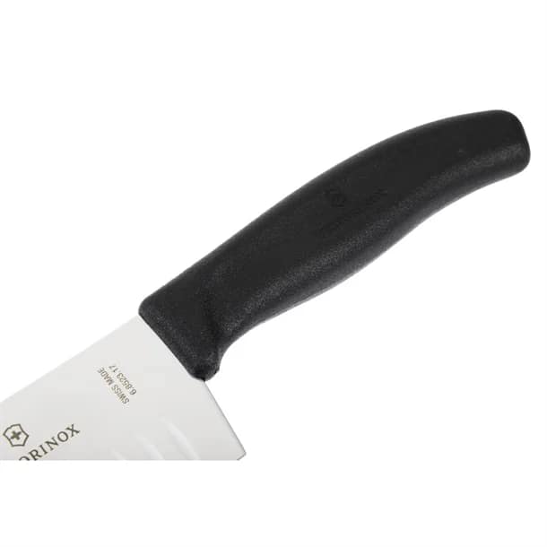 Providing a functional and versatile design, the Victorinox Santoku knife makes for an excellent addition to your preparation tasks. The 170mm blade features a broad construction that makes slicing through the toughest of produce effortless – with no cost to the quality of the results. The blade also features a fluted edge that prevents food items from sticking to the blade, allowing you to quickly complete preparation tasks.