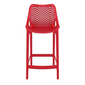 Discover durability and style with the Siesta Exclusive UV Stabilised Air Barstool 65, designed to elevate your indoor and outdoor spaces, now offered in an eye-catching Red. Built from one-piece injection-molded polypropylene and reinforced with glass fiber legs, this barstool represents exceptional strength and stability. The inclusion of UV stabilizer ensures that the stool retains its vibrant Red color and resilience, making it perfectly suitable for commercial venues, whether indoors or outdoors. The barstool carries a comfortable seat height of 650mm, with overall dimensions of 960mm in height and 440mm in width, providing both style and functionality. Boasting a 5-year warranty and CATAS testing for added quality assurance, this barstool is a long-lasting and reliable choice, accompanied by replaceable feet and stackable capabilities for convenient use and storage. Stocked in a wide range of colors including Anthracite, Black, White, Orange, Green, and Taupe, these European-made barstools amplify both practicality and elegance.