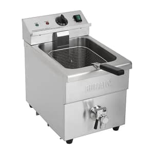 Its user-friendly dial temperature control, thermal safety cut-out, and cool-touch basket grips ensure safe and precise operation. The V-shaped oil pan and drain taps make cleaning fast and mess-free, and the stainless steel body offers durability and easy maintenance.