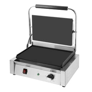 - Construction: 430 stainless steel housing, flat cast iron plates, grease tray, dial controls