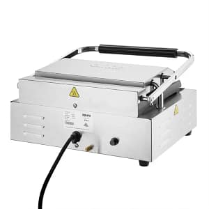 - Construction: Stainless steel body with cast iron flat plates; digital timer; removable drip tray; cool-touch handle