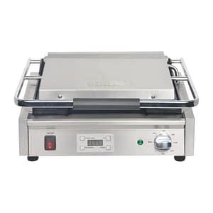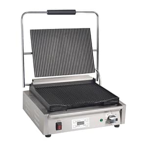 The adjustable swivel top plates have a smooth opening and closing mechanism that can easily compress food in order to create consistent cooking results. This contact grill comes equipped with a grill scraper so you can keep it in top condition for longer.