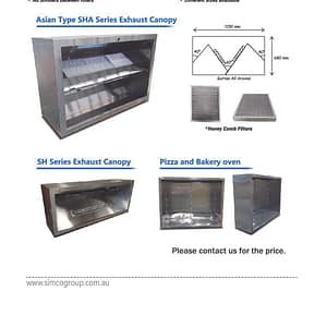 The Simco SHA1900 is ideal for use over Asian cooking equipment. Its design and size are most compatible with 1900mm wide setups but check the dimensions of your existing equipment for a precise fit.