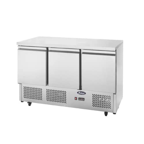 Atosa ESL3851 3-Door Table Saladette Fridge with Stainless Steel Top – 1365mm