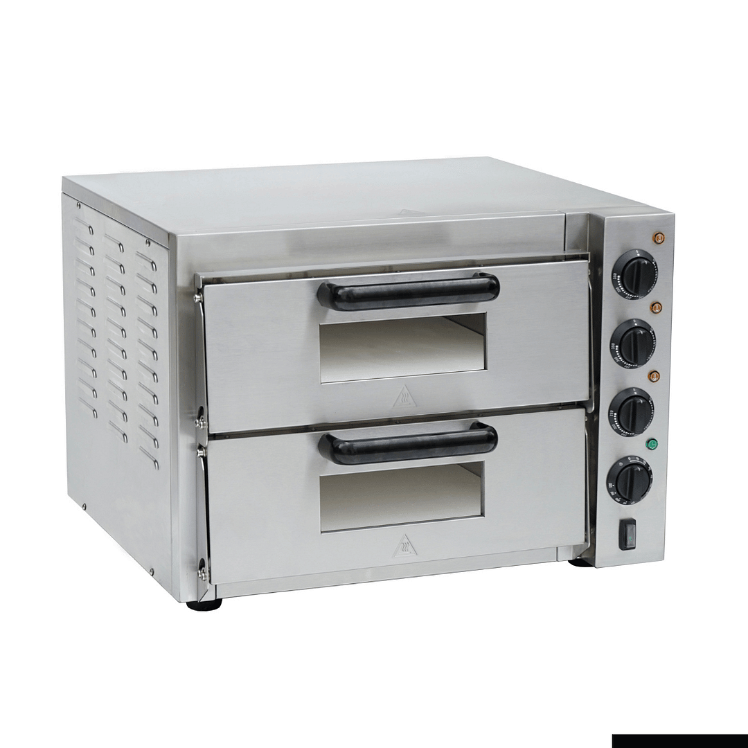 The BakerMax EP-2T Compact Double Deck Pizza Oven is the ideal solution for small commercial kitchens. With a 350°C baking range and ceramic hearth in both decks, it delivers consistent heat and authentic pizza texture in a space-saving design. Whether you’re a café, food truck, or bar, this oven ensures fast, even results every time.