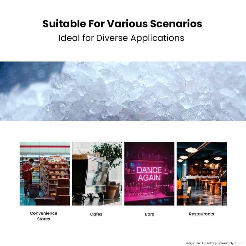 Granular ice is ideal for chilled displays, food preservation, medical cooling, and blending beverages like smoothies and juices.