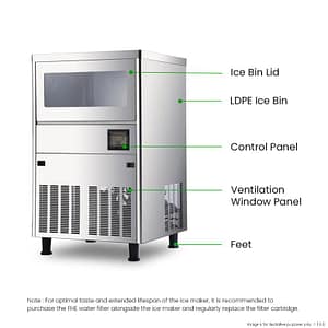 - Ice type: Crescent cubes, 13 × 30 × 35 mm