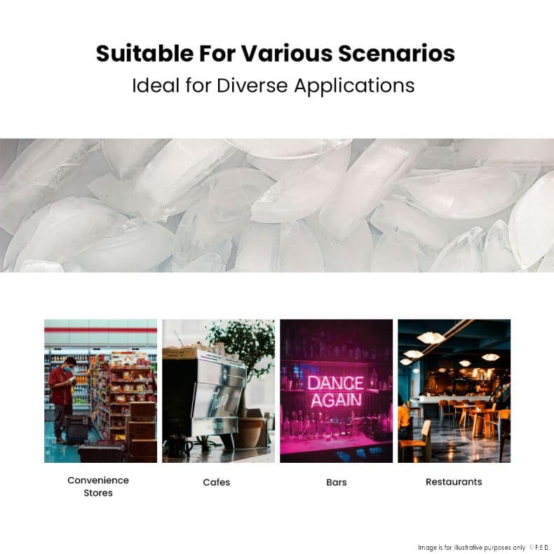 - Ice type: Crescent cubes, 13 × 30 × 35 mm