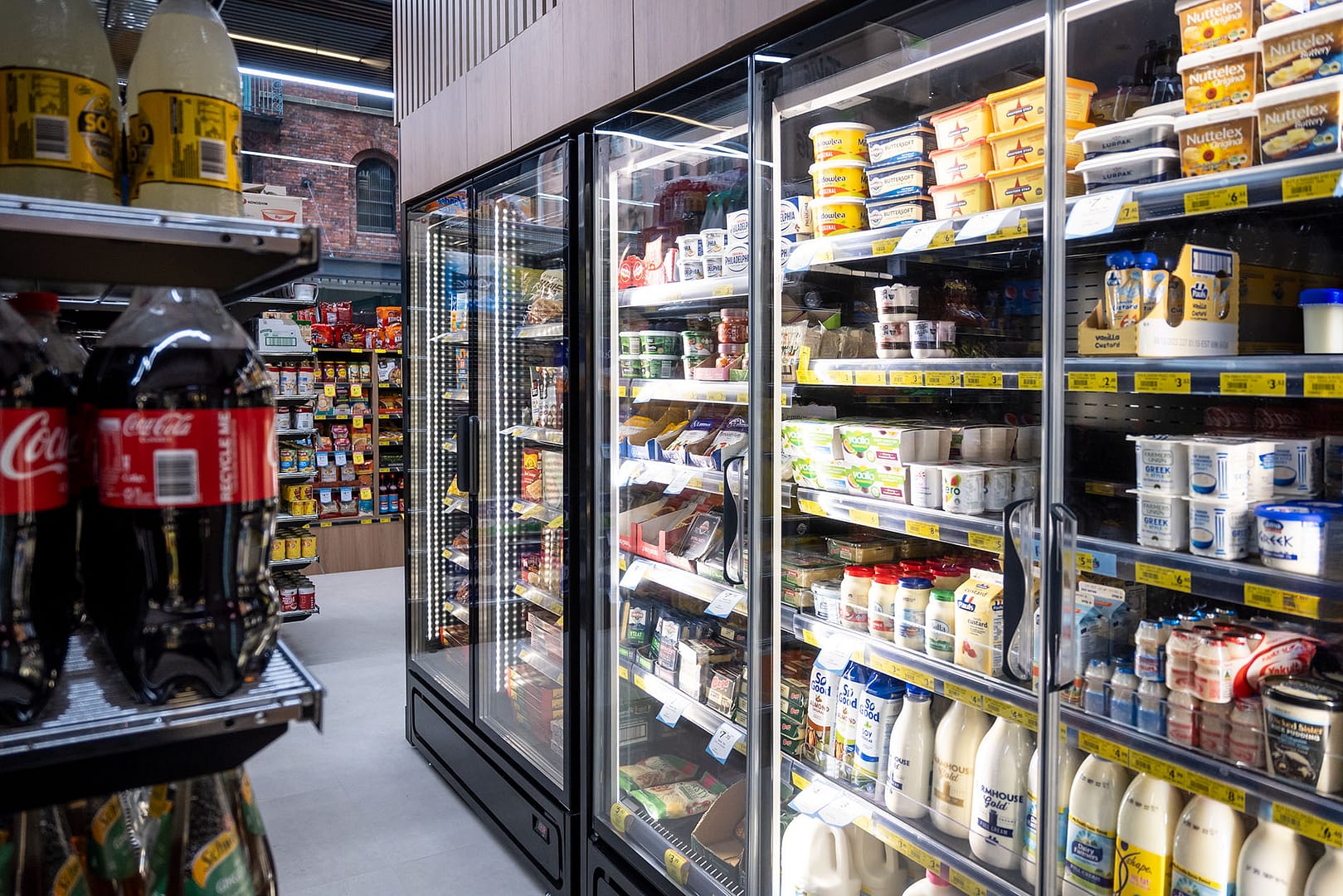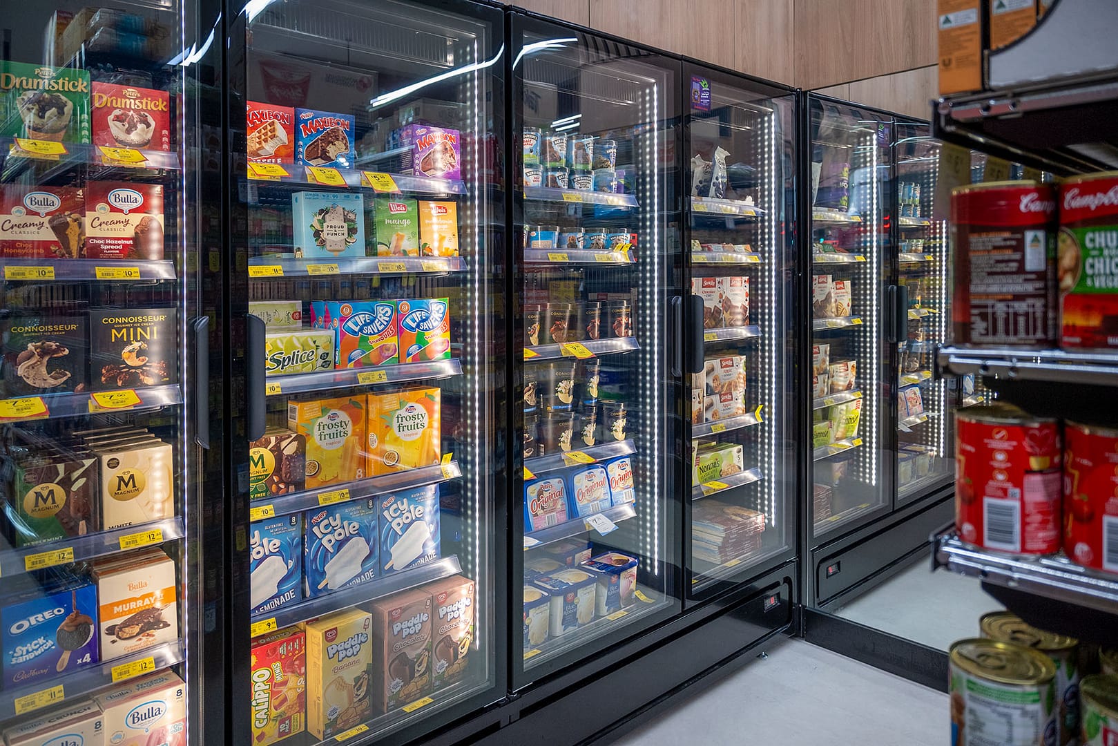 - Double-Glazed Hinged Glass Doors: Maintain internal temperature while reducing energy loss