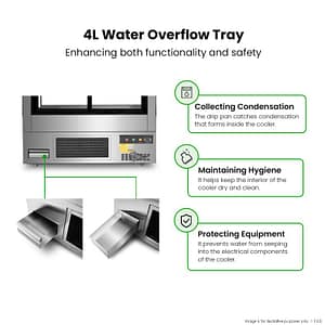 - Shelving: 3 adjustable tempered glass shelves with AISI304 triangular stainless support