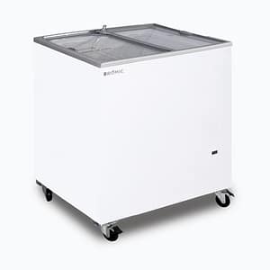 The Bromic CF0200FTFG-NR Display Chest Freezer offers 191L of energy-efficient storage combined with flat glass sliding lids for excellent product visibility. Featuring an 8-star GEMS rating, lockable design, and R600a refrigerant, it’s the ideal freezer for supermarkets, convenience stores, and cafés looking to boost frozen product sales without increasing running costs.