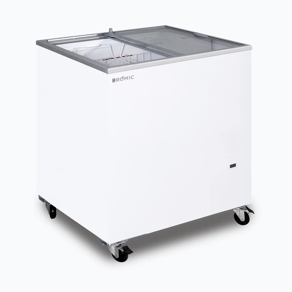 The Bromic CF0200FTFG-NR Display Chest Freezer offers 191L of energy-efficient storage combined with flat glass sliding lids for excellent product visibility. Featuring an 8-star GEMS rating, lockable design, and R600a refrigerant, it’s the ideal freezer for supermarkets, convenience stores, and cafés looking to boost frozen product sales without increasing running costs.