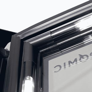 - Doors: 2 hinged, self-closing, double-glazed glass doors with Low-E coating