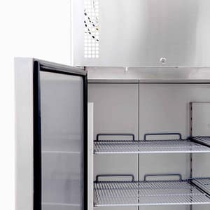 - 5 stainless steel adjustable shelves per door – GN 2/1 compatible