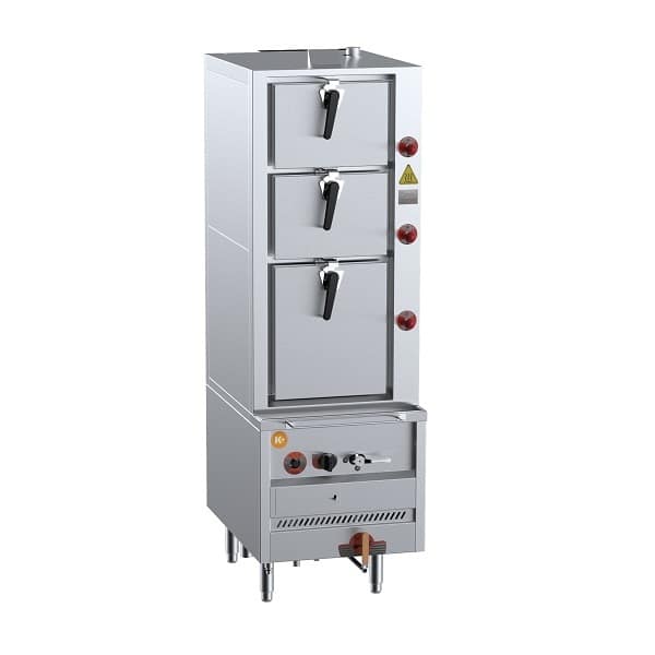 B+S K+ DSK-3S Triple Deck Steamer – Slim, 90MJ Gas, With Filter