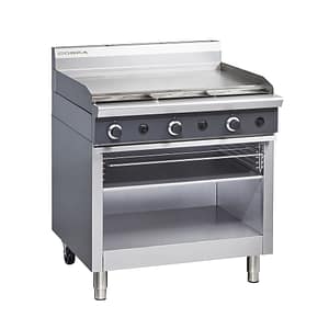 The Cobra CT9 solves your space crisis by combining two essential workstations into one robust 900mm footprint. Engineered by Moffat, this unit features a massive 12mm thick machined steel griddle plate [cite: 148, 154] powered by three 21MJ/hr burners [cite: 146], delivering a total of 63MJ/hr [cite: 193] for rapid searing.