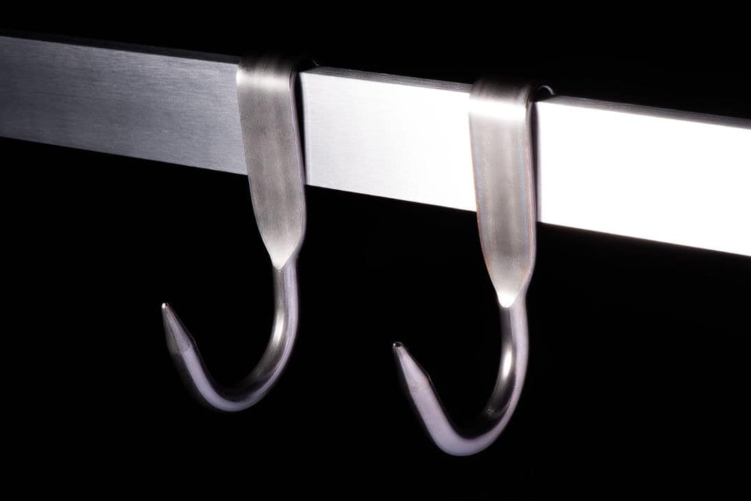 - Storage: 6 stainless steel shelves, 1 hook rail, 4 meat hooks