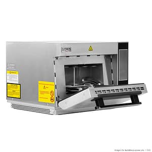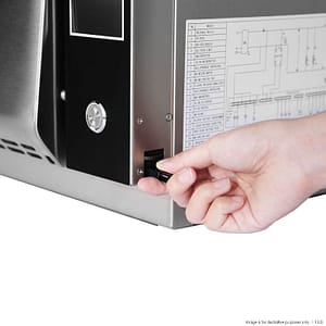 Combining microwave power and top/bottom radiant heat, this 3.3 kW hybrid oven achieves professional results up to 10× faster than standard convection ovens — perfect for cafés, QSRs, and convenience outlets.