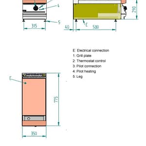 The 700 Series fry-tops have stainless steel burners with an ignition pilot light, and include a “Maximum-Mi?nimum” type valve to control the burner flame and have thermostatic control of the plate temperature: 120 ºC – 310 ºC.