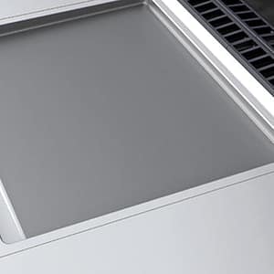 Thanks to independent heating zones and rapid recovery times, the fry top delivers efficient and consistent grilling results, even during peak service times. The surface is tilted slightly forward, which makes draining excess fat and liquids quick and easy—perfect for maintaining a clean and efficient workspace.