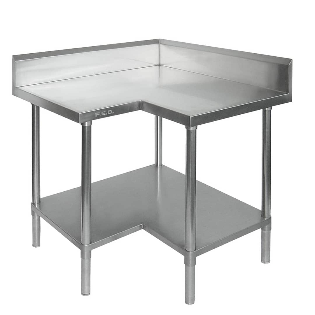 FED 0900-7-WBCB Corner Workbench – 900x900mm, Splashback & Undershelf, SUS304