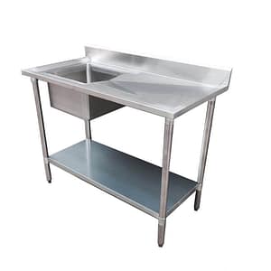 FED 1200-6-SSBL Single Sink Bench – 1200mm Left Sink Stainless Steel