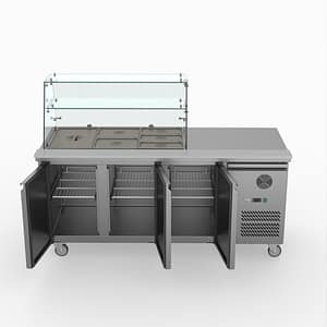 FED-X XTHP3100SALGC Three Door Salad Prep Fridge with Curve Glass Top – 465L