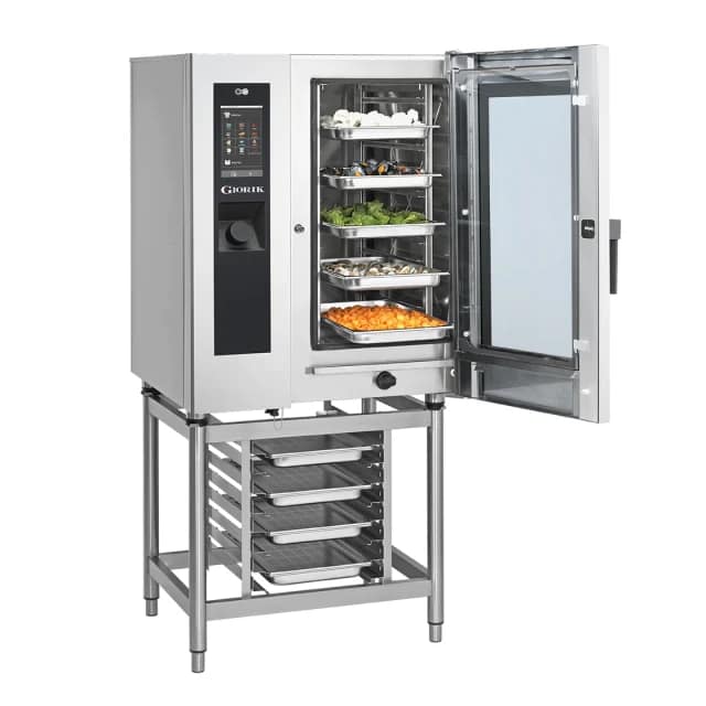 The Giorik SEHE101WT Steambox Evolution is a 10 tray electric combi oven engineered in Italy for restaurants, bakeries, hotels and catering services. Featuring Symbiotic Steam, Steam Tuner and Meteo System patents, it delivers unmatched control of humidity, temperature, and cooking speed.