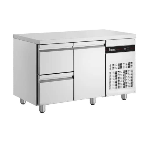 - Storage Configuration: 1 hinged solid door + 2 refrigerated drawers