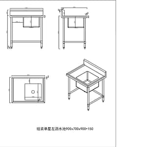 - Single Sink: 450mm x 450mm x 300mm deep sink, positioned on the right side.
