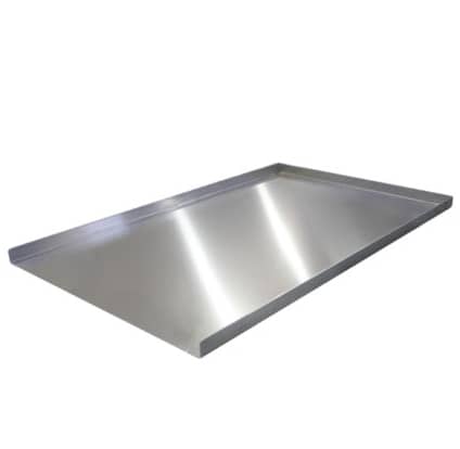- Design: 3 raised sides + open edge for fast product transfer