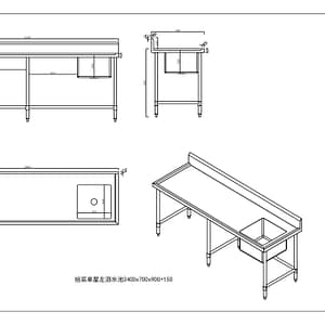 - Right-Side Sink Placement: Sink dimensions 450 x 450 x 300mm, positioned for efficient workflow.