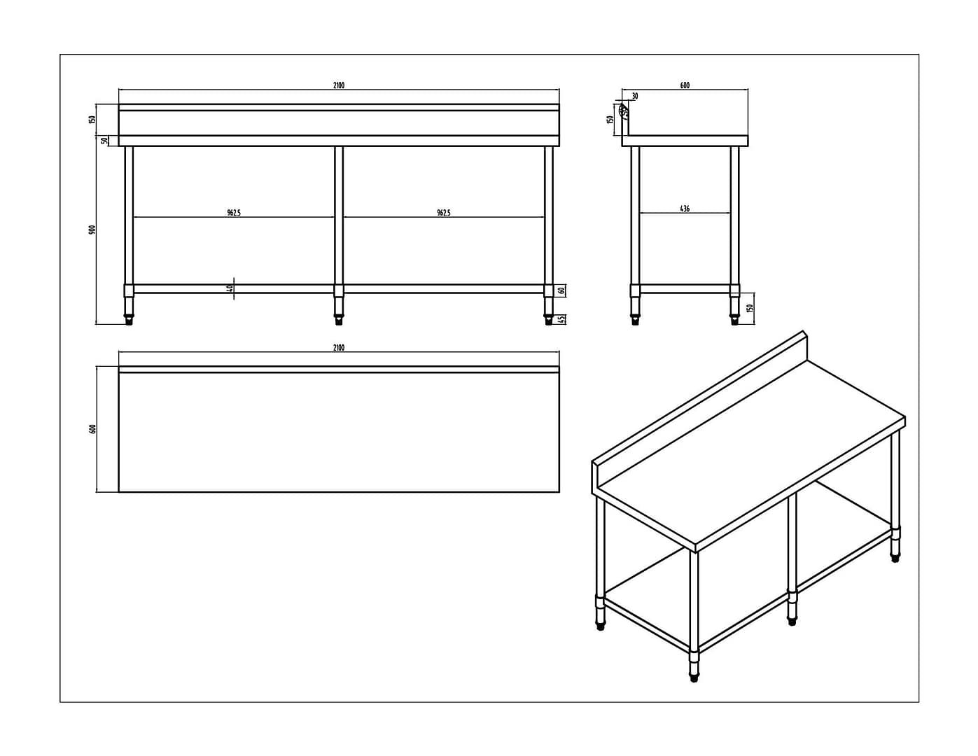 - Dimensions (W×D×H): 2100 × 600 × 900 mm (+150 mm splashback)