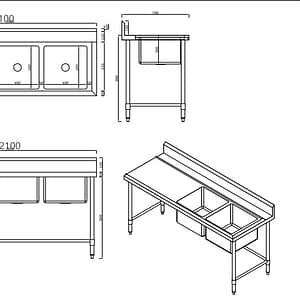 Kitchen Knock 631605 Stainless Steel Double Sink Dishwasher Bench – Left Inlet 2100×700 mm
