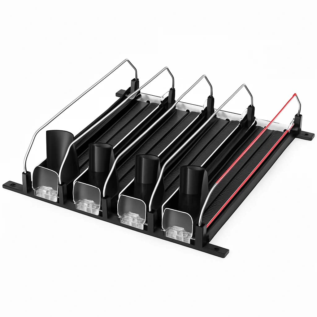The Kitchen Knock 630745 is a compact and reliable 6-track automatic drink pusher, suitable for a wide range of commercial and retail fridge applications. Constructed from high-quality ABS and PVC materials, it’s durable, temperature-resistant, and easy to install. The system ensures one-at-a-time bottle ejection, saving time and effort during restocking and enhancing the customer experience.