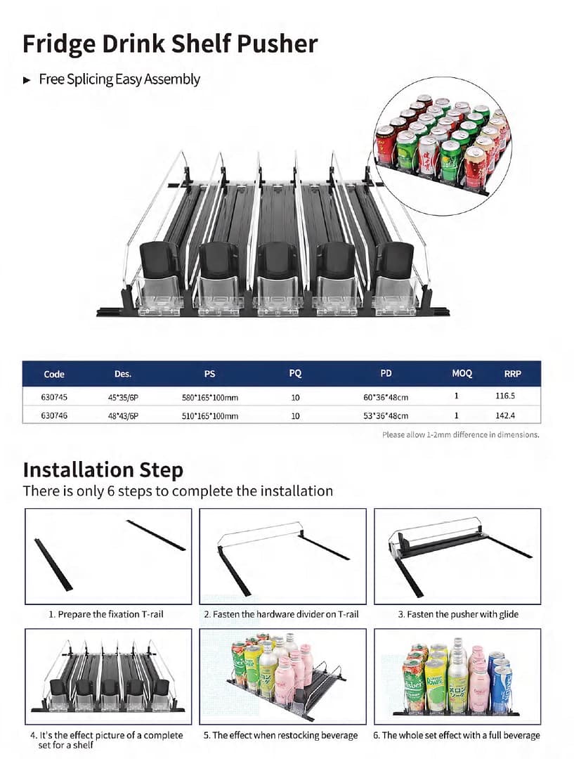 Kitchen Knock 630745 Fridge Drink Shelf Pusher – 45×35/6P