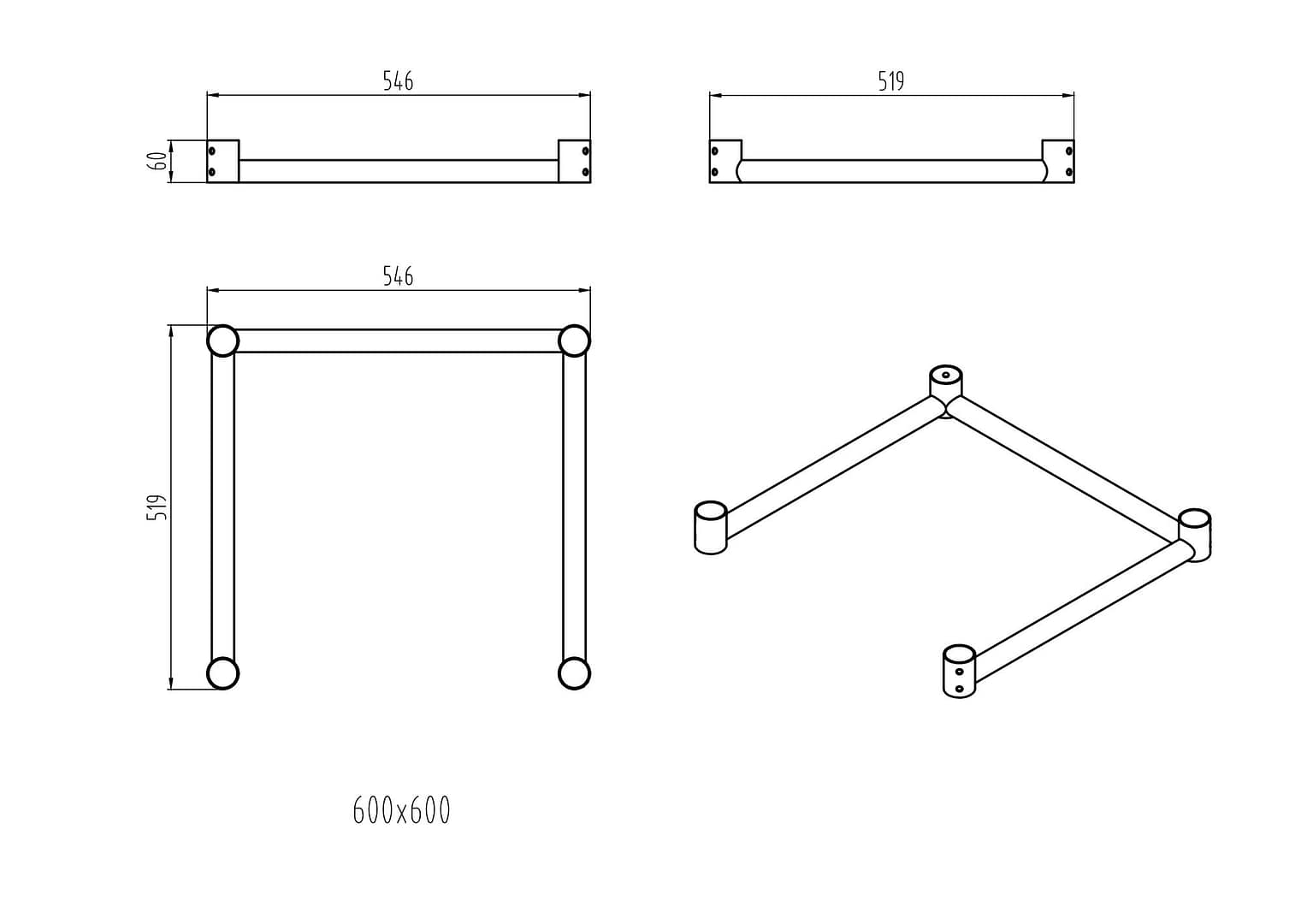 Kitchen Knock 631612 Workbench Leg Brace – 600×600mm Stainless Steel