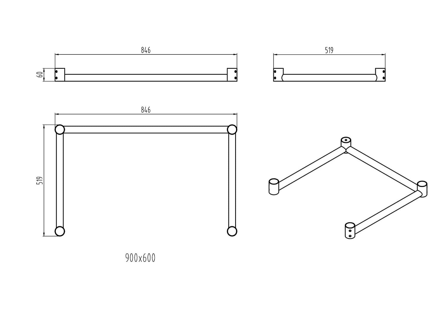 Product Name: KitchenKnock 900×600 Workbench Leg Brace – Model 631610