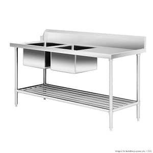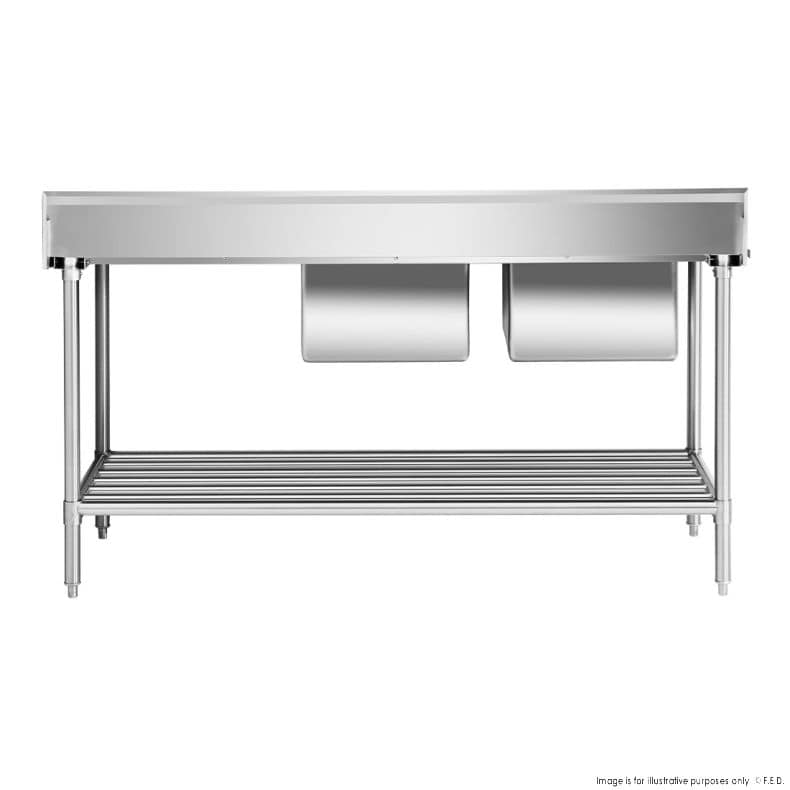 FED DSBD7-1800L/A Left Inlet Double Sink Dishwasher Bench – 1800x700mm Stainless Steel