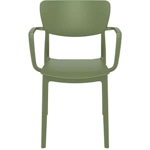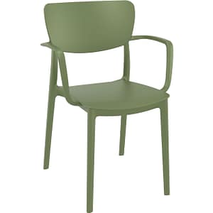 Enhance your indoor and outdoor spaces with the Olive Green Lisa Armchair by Siesta, Europe. This commercial-grade armchair features a single injection of polypropylene with glass fibre reinforcement, providing exceptional strength and durability. It’s stackable, easy to clean, and comes with a 5-year warranty.