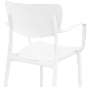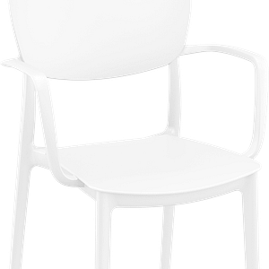Enhance your commercial space with the Commercial Grade White Lisa Armchair by Siesta, Turkey. Made with a single injection of polypropylene reinforced with fiberglass, this armchair is suitable for heavy use and comes with a 5-year warranty.