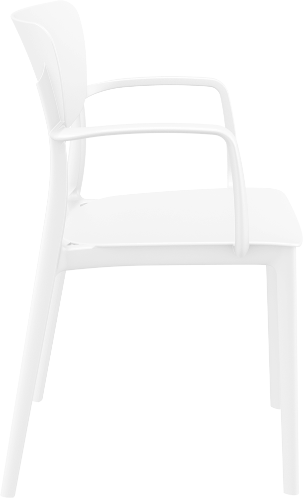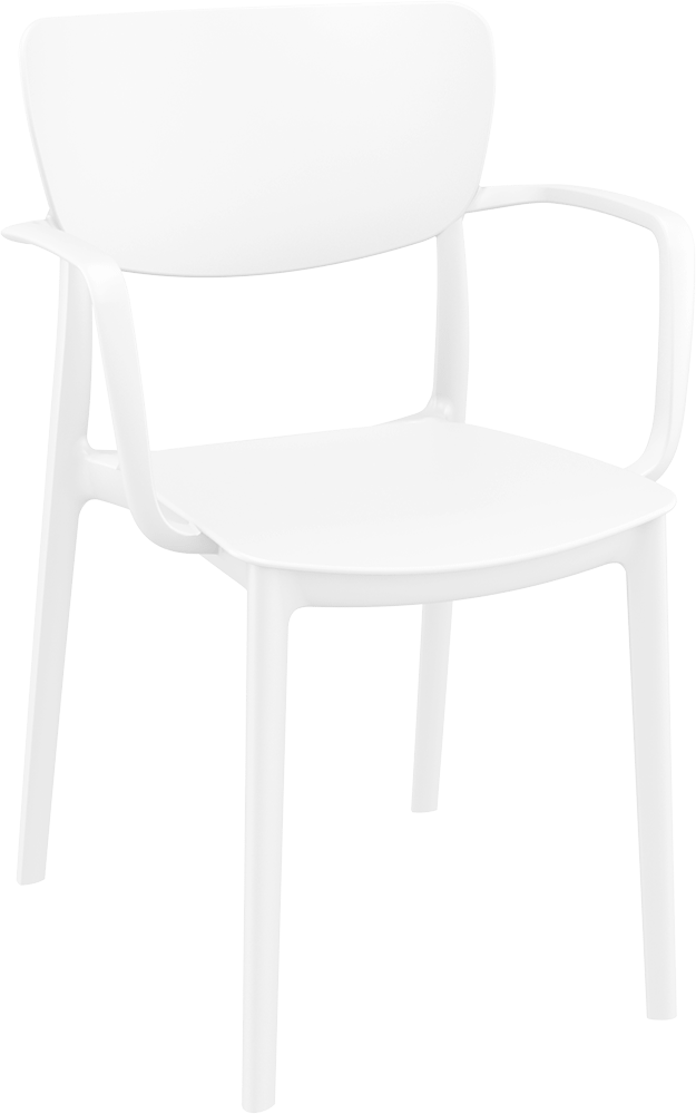 Enhance your commercial space with the Commercial Grade White Lisa Armchair by Siesta, Turkey. Made with a single injection of polypropylene reinforced with fiberglass, this armchair is suitable for heavy use and comes with a 5-year warranty.