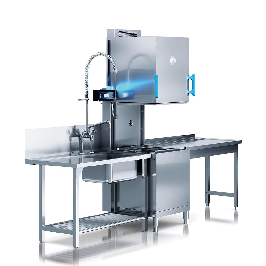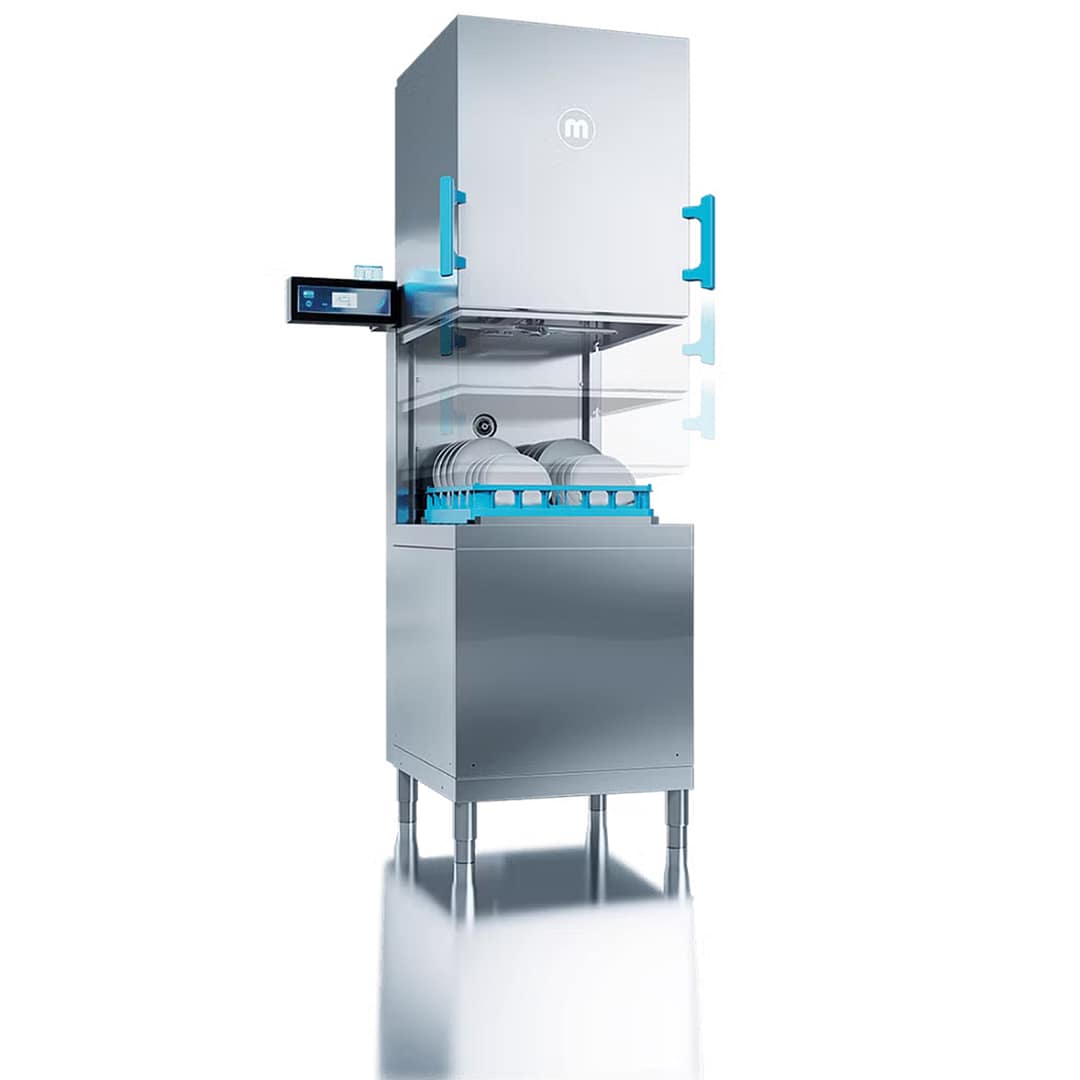 The Meiko M-iClean HM is a premium hood passthrough dishwasher designed in Germany for maximum efficiency and comfort. Featuring the Magic Touch hood, 80% less steam, and an optional PureEnergy package, it reduces wash time and costs while enhancing your kitchen environment.
