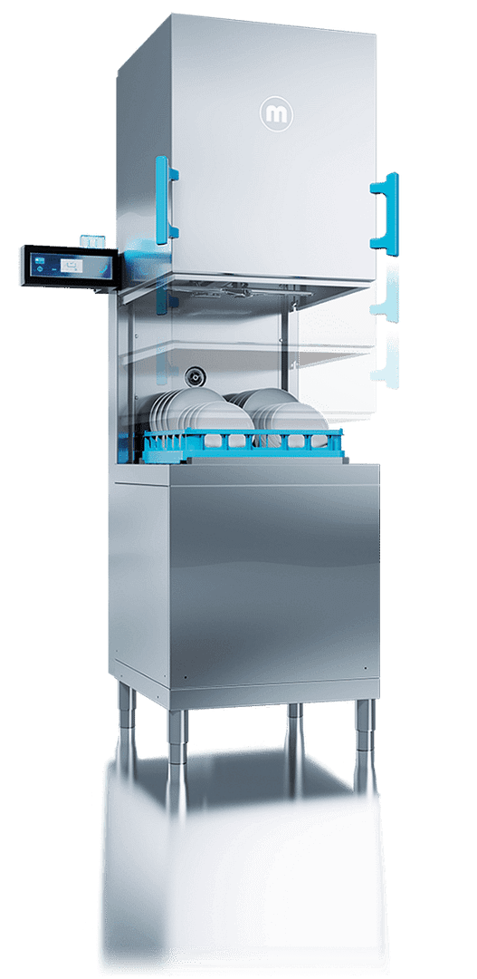 The Meiko M-iClean HXL AirConcept is a premium automatic hood type dishwasher designed for high-capacity use. With up to 120 baskets/hr, AirConcept heat recovery, and revolutionary automatic hood, it delivers cleaner dishes, safer air, and reduced energy bills.