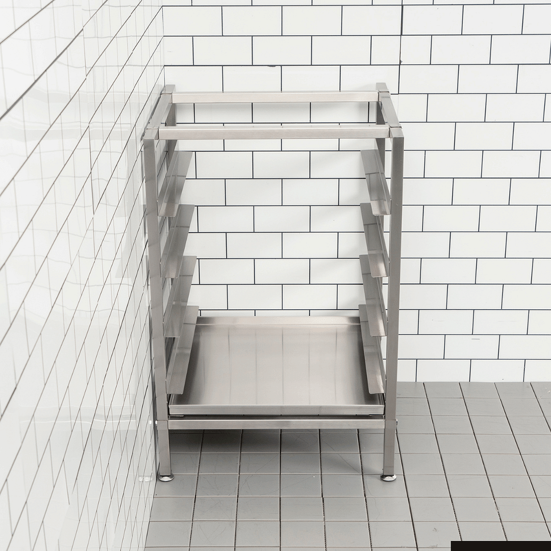 KW Commercial Kitchen recommends the FED 406227 Basket Stand for its functional under-bench height, high-grade construction, and open design for air circulation. Its thoughtful layout enhances hygiene, speeds drying, and keeps your dishwashing area organized and safe.