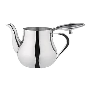 Crafted from robust stainless steel, the teapot is not only visually appealing but also offers strength and corrosion resistance. The heat-resistant handle ensures safety, staying cool to touch for both staff and customers. Its high-polish, mirror finish adds a radiant shine to your tabletops.