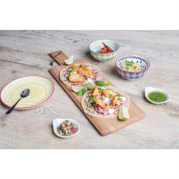 Elevate your food presentation with the Olympia GM309 Oak Handled Wooden Board. Designed for both functionality and aesthetic appeal, this medium-sized serving board brings rustic charm and natural elegance to your table. Crafted from high-quality oak wood, it provides a durable yet stylish surface perfect for serving charcuterie, artisanal bread, and gourmet platters.