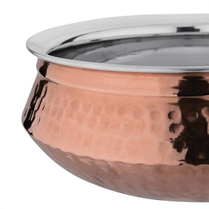 The dish’s excellent insulation properties ensure that food remains at the ideal temperature for longer. The hammered copper outer layer not only aids in heat retention but also adds a distinct, stylish touch to your service, elevating the dining experience.